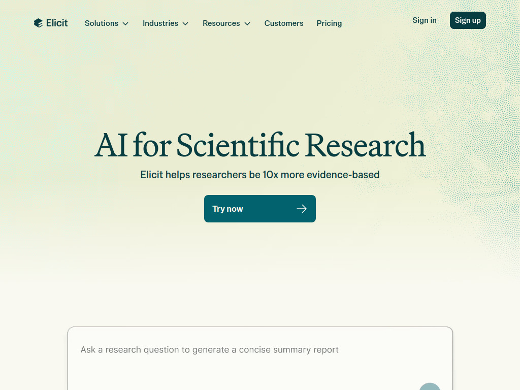 Elicit, araştırmacılar için geliştirilmiş bir AI aracıdır. 125 milyondan fazla akademik makaleye erişim sağlayarak, kullanıcıların bu makaleleri aramasına, özetlemesine ve veri çıkarmasına yardımcı olur. Araç, akademik ve endüstriyel araştırmalar yapan 2 milyondan fazla kullanıcı tarafından tercih edilmektedir. Elicit, araştırma süreçlerini hızlandırmak ve verimliliği artırmak amacıyla tasarlanmıştır.