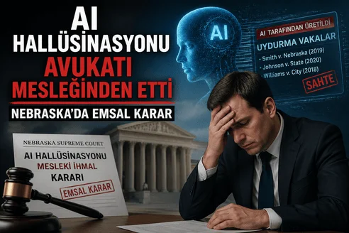 Yapay zekanın hukuk dünyasındaki en ağır bedelini şimdiye kadar bir Amerikalı avukat ödedi. Nebraska Yüksek Mahkemesi, 15 Nisan 2026'da Omaha'lı avukat Greg Lake'i süresiz olarak meslekten uzaklaştırdı. Gerekçe: AI ile yazılmış, uydurma davalar ve hiç var olmayan yasal atıflarla dolu bir dilekçe.